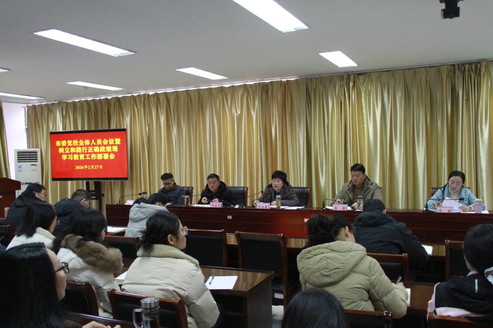 市委党校召开全体人员会议对树立和践行正确政绩观学习教育进行安排部署2026.02.24